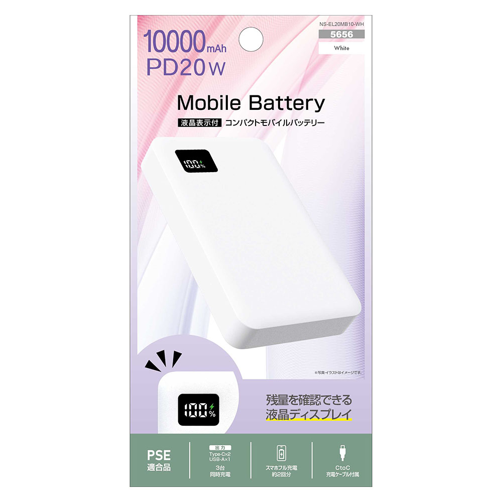 液晶表示 PD20W コンパクトモバイルバッテリー10000mAh