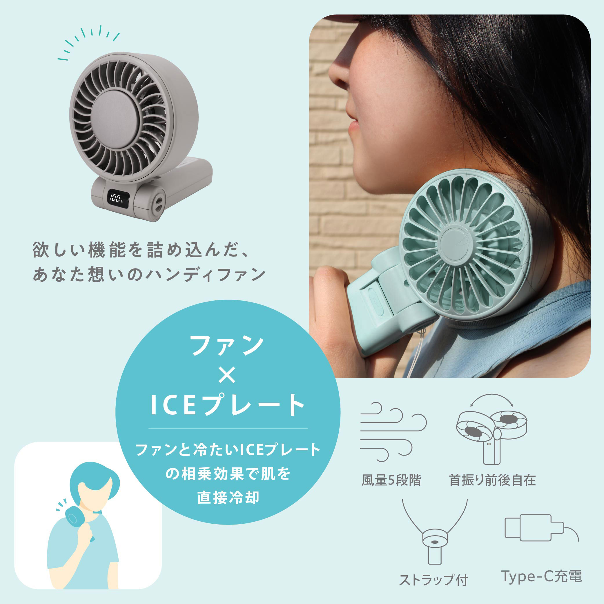 ファンとICEプレートの相乗効果で肌を直接冷却できる、夏のお出かけのマストアイテムです。